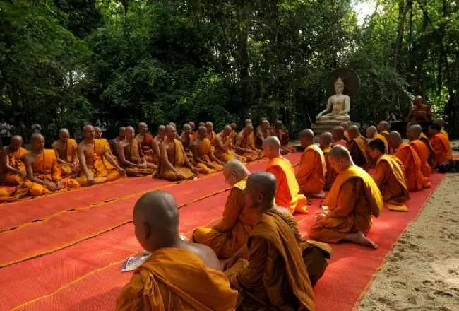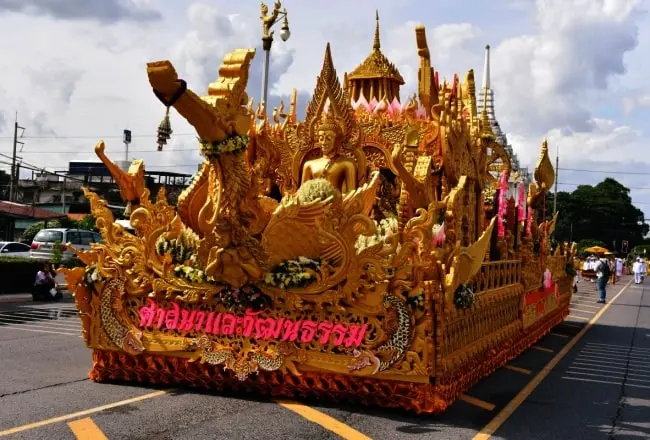 - 🕯️ Lễ Nhập Hạ – Khao Phansa (khoảng 06/07): Khao Phansa đánh dấu ngày bắt đầu mùa An Cư Kiết Hạ — khoảng thời gian ba tháng trong mùa mưa khi các tu sĩ Phật giáo Theravāda không được phép đi xa mà phải ở yên trong chùa để tu tập chuyên sâu. Truyền thống này bắt nguồn từ thời Đức Phật còn tại thế, khi các nhà sư dừng hành hóa để tránh vô tình giẫm lên côn trùng và cây cối mùa sinh trưởng. Vào ngày Khao Phansa, cộng đồng dâng cúng các vật dụng cần thiết cho chư tăng, tham gia buổi lễ tụng kinh trang trọng và tham dự đám rước nến lung linh trong đêm.