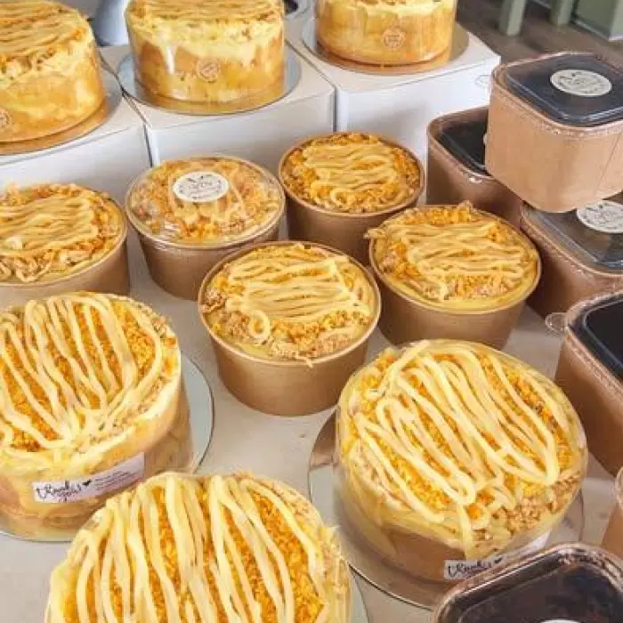 - - Size Nhỏ – $25: Bánh đủ dùng cho 2–4 người, có sốt trứng muối phủ mặt bánh thơm béo.