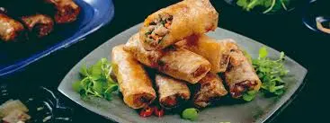 - Chả giò giòn rụm, thơm nhân, chấm kèm nước chấm kiểu Việt.
